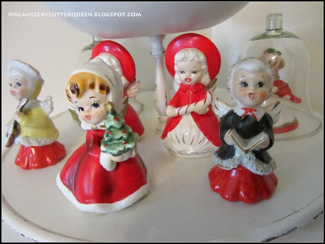 I am always looking for ways to display my growing collection of vintage Christmas angel figurines. This is just part of them, but I think this tray may work.