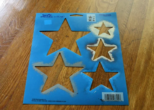 I pounced one of the star stencils, from this older Plaid stencil, on top of the blue square.